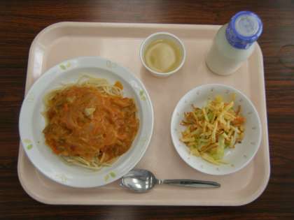 【献立】 スパゲッティトマトクリームソース 牛乳