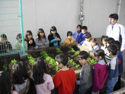 校庭側のほうが校舎側よりも大きい理由を先生が質問したら・・・太陽が良く当たるから・・・・答えていました。
