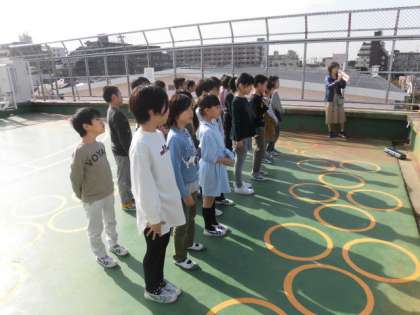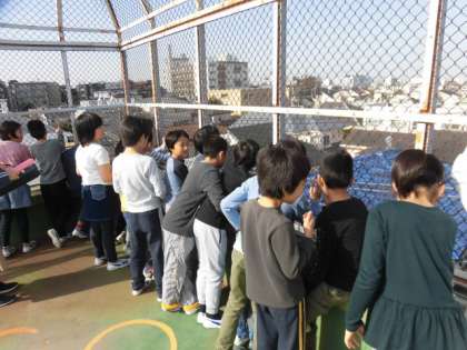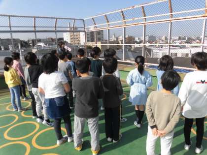 今日は、音楽の先生のサプライズにより、屋上で富士山を見ながら合唱しました。