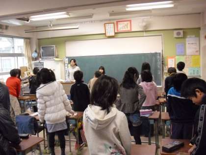3年生の教室−“朝の会”が始まる前に・・・1時間目の準備・・・そして、あいさつ・・・健康観察・・・と続きます。