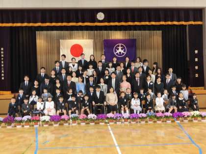 平成31年度九品仏小学校入学式を行うことができました。生憎のお天気でしたが、それをものともしない太陽のように明るく元気な54名もの新入生を迎え、九品仏小学校の新年度のスタートです。