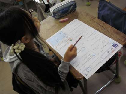 “テスト”・・・よく読んで答えていました。提出して、次の課題に取り組む子供もいます。