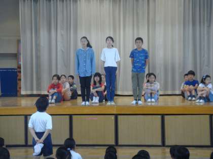 今年度前期の委員会活動各委員長の紹介を行いました。各委員会の取り組みや全校児童へのお願いなどを発表しました。5年生と6年生を中心に結成された各委員会が協力して九品仏小をよりよくするためにこれからの活動に取り組んでいきます。