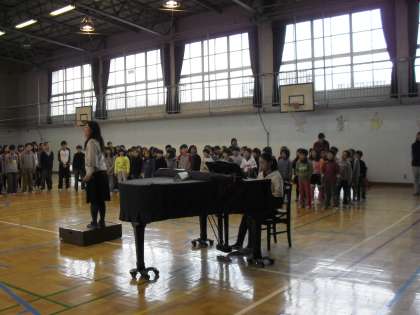 今日、音楽集会がありました。“♪世界がひとつになるまで♪”を歌いました。歌い方で注意するところの指導があり・・・最後は、とても素晴らしい合唱になりました。