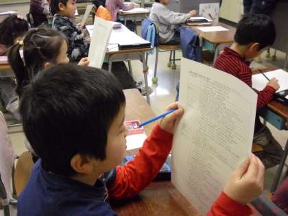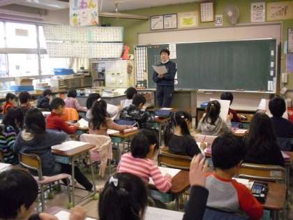 3月2日(水)に行う“6年生を送る会”の1年生の“出し物”について先生から、説明があり・・・そのあとに、練習をしていました。