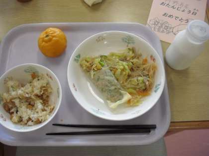 今日は、“2月の誕生日給食”です。その様子をご覧ください。
