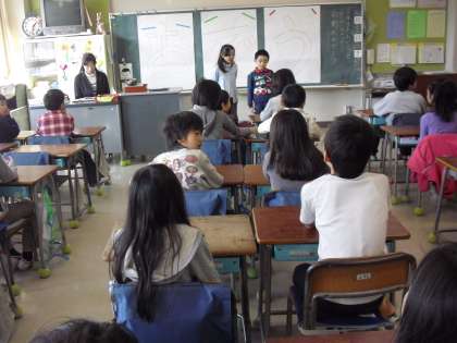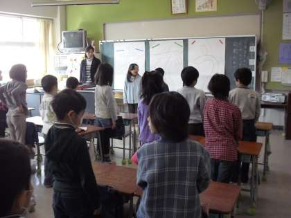 “朝の会”・・・・あいさつ・・・日直の話“以前に、葛西臨海公園”へ行った時のことを話しました。“はじめに 次に  最後は、・・・”時系列で話していました。