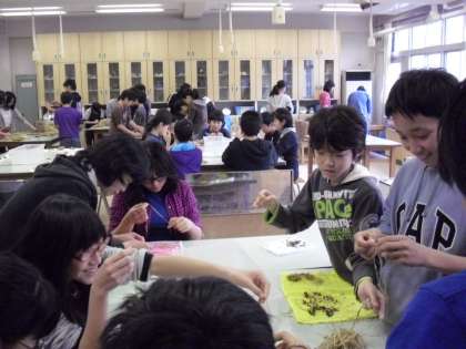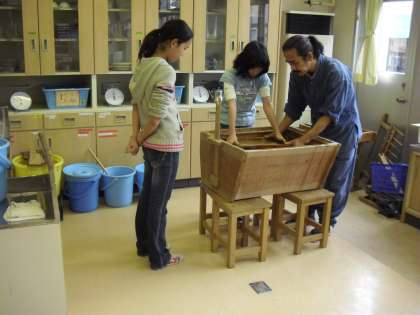 図工の時間にゲストティチャーをお呼びして、6年生が“紙すき体験学習”をしました。