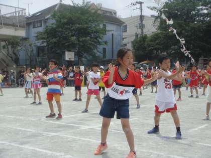 ここはアメリカンハイスクール! 運動系クラブや文科系クラブ、みんなで楽しく青春を謳歌しています。そんな様子を子どもたちが元気にダンスで表現しました。