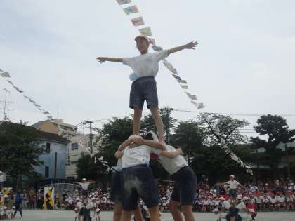 運動会の最大の目玉。高学年による組体操。一人ひとりの力を結集し、タイトルの通りみんなで「煌めく」素晴らしい作品を創り上げてくれました。