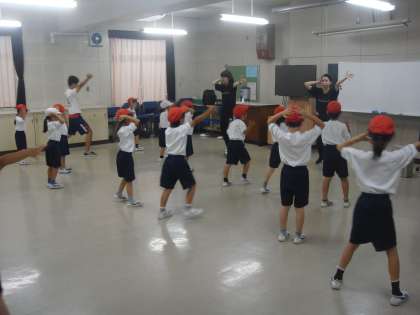 今日はエイベックスから講師の先生をお迎えし、1年生がダンス講習を受けました。踊ったのは「おーい世田谷」という世田谷区オリジナルのダンスです。ヒップホップの要素を取り入れたダンスを1年生は直ぐに覚え上手に踊っていました。