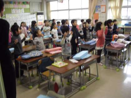 朝の会の前に今日の3,4時間目の“6年生を送る会”の練習をしていました。