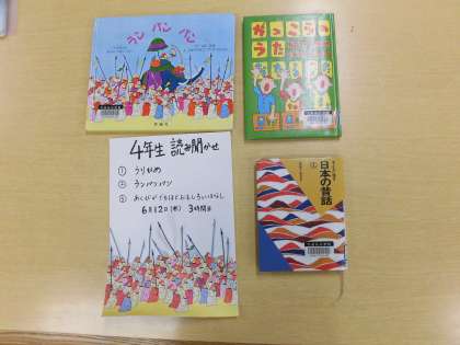 5月のLLは、「七羽のからす」「11ぴきのねこ」「ハーモニカの名人レンティル」を紹介していただきました。今月は、日本昔話「うりひめ」、インドの昔話「ランパンパン」、素話「あくびがでるほどおもしろいはなし」でした。