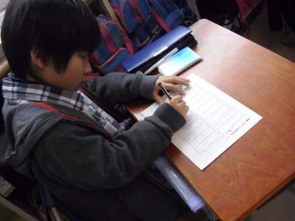 “朝 漢字テスト”・・・課題の漢字に挑戦!廊下には、“家庭科:手提げ袋”の作品が掲示してありました。今日の3、4時間目は、“6年生を送る会”を運営します。最高学年へ向けてのステップです!