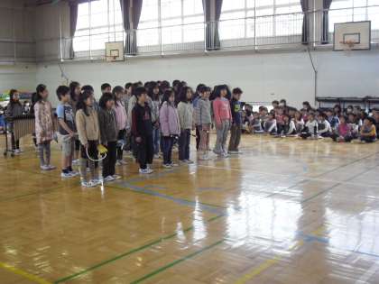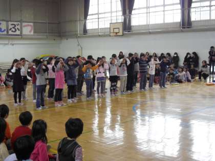各学年の出し物・・・1 年は、6年生への感謝を歌や表現