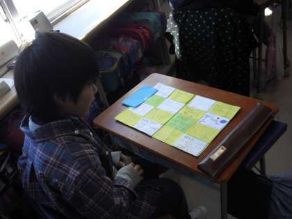 “朝の会・先生の話”健康観察・・・今日の予定・・・これからの心構えなど・・・子どもに分かりやすく話していました。先日の6年生を送る会の運営も代表委員会を中心に5年生の取組みも素晴らしかったです。誕生カードをもらった子供もいました。