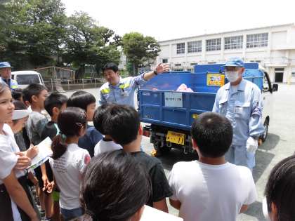 リサイクル処理の過程を映像で観たり、ごみ収集体験をしたりしながら、見えないところで自分達の暮らしを支えられていることに気づきました。また、3Rや2Rという言葉を聞き、自分にできることがないかを考えた子どもたちでした。