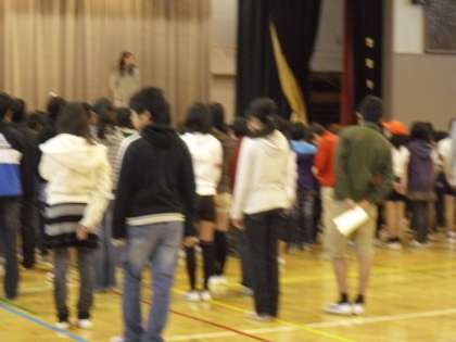 校長先生の話は、“文集:世田谷の子”の入選・佳作などした児童に表状をわたしました。また、土曜日の“合唱団:ミニコンサート”や昨日の“玉川消防署:防火・防災の標語”入選者表彰式の様子などを紹介したあと・・・残り少ない3学期・・・“ことばの力”を考えて・・・自分も周りの人も“いい気分になる”ことばをつかっていこうと、話しました。画面は、12日(土)に行われる3校音楽祭のこと、合唱団のコンサート18日に行うことを話しているところです。