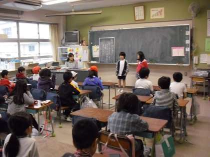 2年生は、“朝の会:日直の話”・・・話が上手になってきました。今日の日直の子どもは、週末に目覚まし時計が・・・5時になってしまったことを話していました。生活の中の出来事を題材に上手にまとめました。