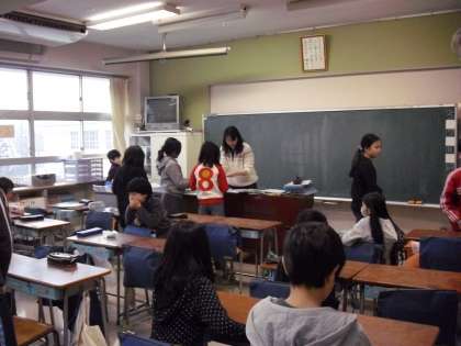 4年生は、“朝の会:健康観察”のあと、集金をつめて・・
