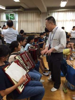 本日は、音楽科の「さぎそう学舎 協力授業」ととして、八幡小学校音楽専科の稲葉谷先生、八幡中学音楽科の大森先生が、九品仏小学校の6年生の音楽科授業に来てくださいました。