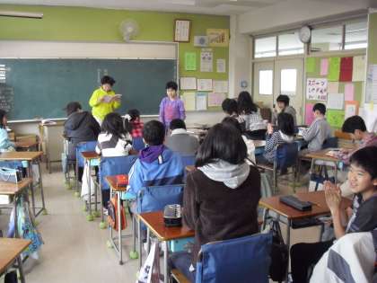 5年生は、“朝の会”・・・今日、誕生日を迎える子に誕生日カードをプレゼント・・