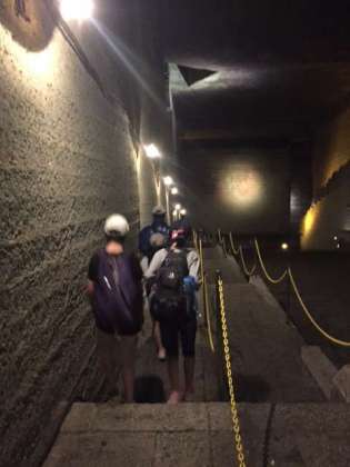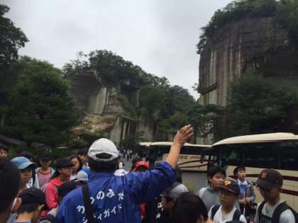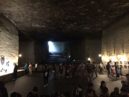 坑道の中に入っていくと、今から1500万年前にできた大谷石の岸壁がそびえ立っていました。