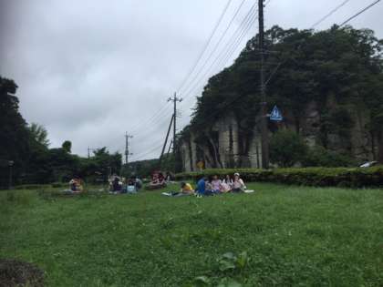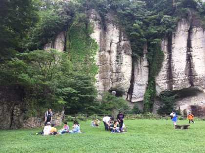 お昼は、大谷石の岸壁を見渡せる公園で、お弁当を食べました。
