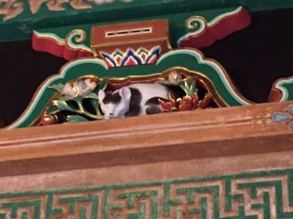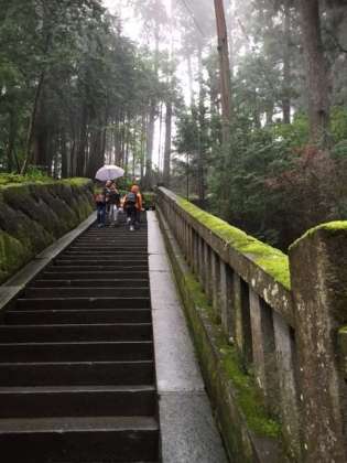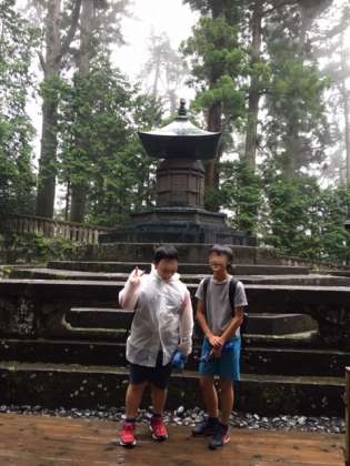 招き猫の門を通って長い階段を登り、徳川家康のお墓も見学しました。最後は鳴き龍を体験しました。