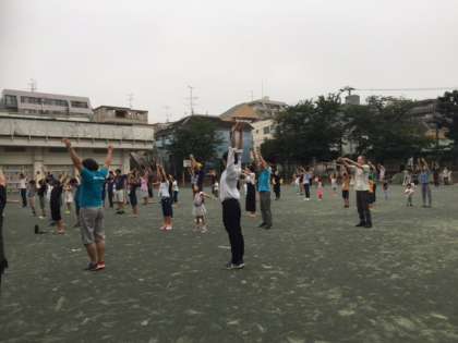 今週から、朝の「ラジオ体操」が始まつています。今年から九品仏小学校の校庭で行うことになりましたので、大勢の子どもたち、保護者、地域の皆様が、広い校庭で伸び伸びとラジオ体操をしていました。どうぞ皆さんふるってご参加ください。