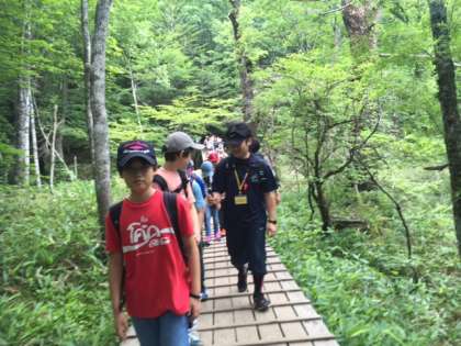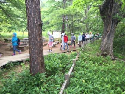 湯滝でお弁当とペットボトルのお水を受け取り、戦場ヶ原のハイキングに出発しました。