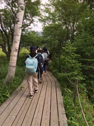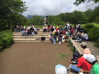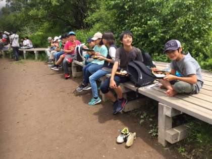 雨も上がり、昼食は暖かい日差しの中、赤沼でお弁当を食べました。