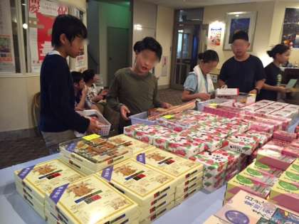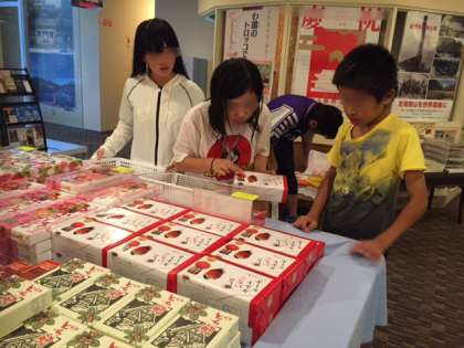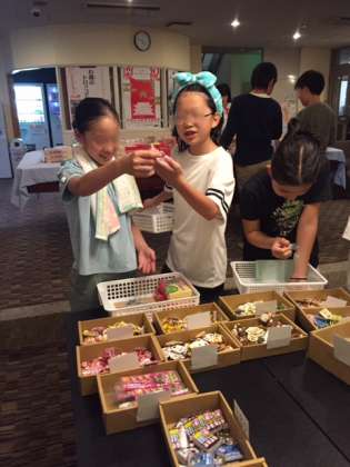 ホテルでお土産を買いました。お家の方のお顔を思い浮かべつつ、一つ一つ手にとって慎重に選んでいました。お友達に相談しながら、仲良く買い物をしていました。