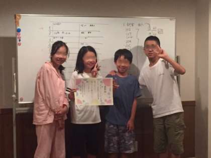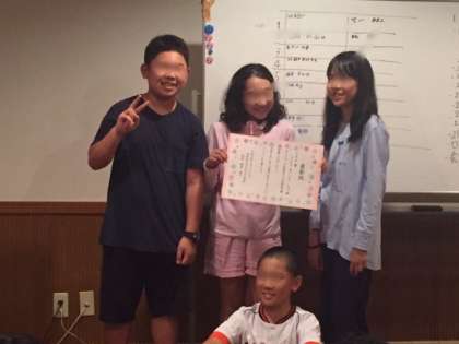 夜のプログラムは室内でのレクリエーションでしたが、子どもたちからは、「知恵をしぼって頭を使う問題がとても面白かった。」「自分一人だけでは解けない問題も、グループのみんなと協力して解くことができました。」という感想があり、楽しい時間を過ごせたことがうかがえました。