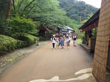 グループで仲良く、江戸村を見学しています。