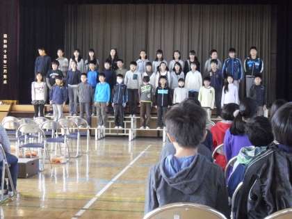 4・5・6年生は、1時間目−体育館にて・・“卒業式の練習”・・まだ、始めたばかりですが・・・皆、上手でした。