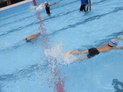 今日は夏季水泳指導前期の終了日でした。昨日は熱中症指数が高く、水泳を実施できませんでしたが、今日はその分、たくさんの児童が参加し検定を行いました。前期の水泳を頑張った成果は発揮できたでしょうか。後期の水泳指導は8月23日(金)から始まります。