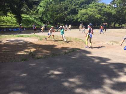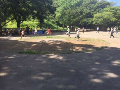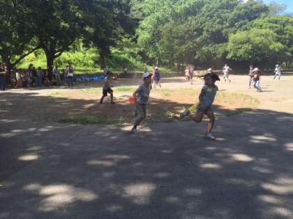 ゲームタイムの前半は「猛獣狩りに行こうよ」後半は「シッポとり」をやりました。広場の中を子どもたちは、元気に駆け回っていました。