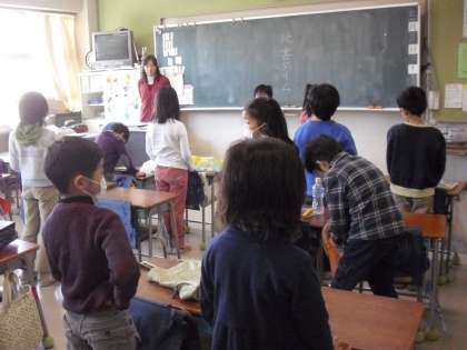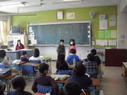 “朝の会”・・日直の話です。“昨日、遊んだことを話していました。”