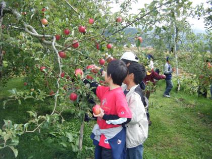 どこまでも広がる田んぼと畑。その間をきれいな川が勢いよく流れ、顔を上げれば雄大な山々が広がっています。世田谷の街とは違う川場村。関りんご園では真っ赤なリンゴを狩り、おみやげとなりました。
