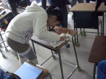 自分の身の回りやロッカーなどの清掃・・・卒業式の式場の掃除・・・要綱練習の前にきれにしていました。