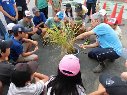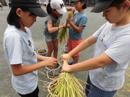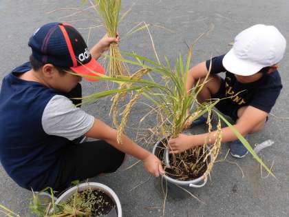 初めは恐る恐る稲を刈っていた子ども達でしたが、次第に手際が良くなり、慣れた手つきで楽しそうに稲を刈っていました。