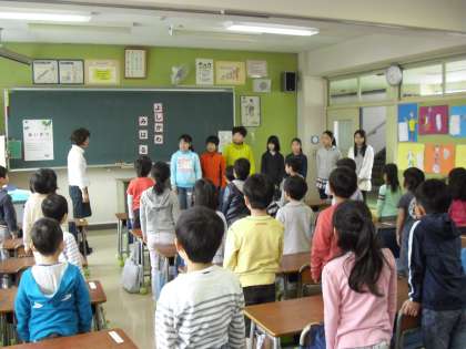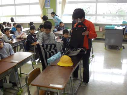 今日から毎朝・・・6年生がお世話をしてくれます。登校して、教室に来てからどうするのか等々を教えてくれます。また、紙芝居などもしてくれます。
