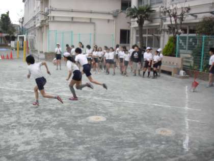 6年生は、“体育・陸上運動”短距離走の練習・・・タイム計測