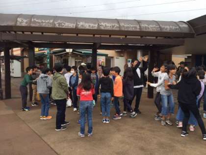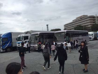 三芳インターで最初のトイレ休憩をとりました。気温は低めですが、みんなとても元気です。