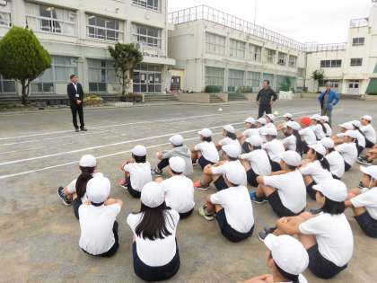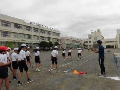 6年生は来週に迫った連合運動会に向けて練習を積み重ねています。今日は、さぎそう学舎小中連携授業の一環として、八幡中学校の先生方に指導をしていただきました。
