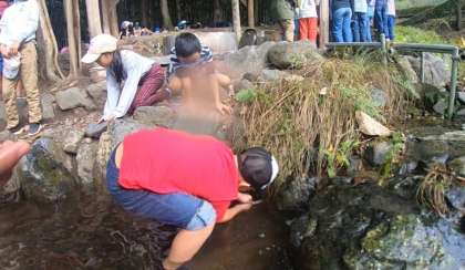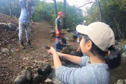 みんなが楽しみにしていたマスつかみ、水の中を素早く泳ぐマスを素手で捕まえるのは、とても難しかったです。