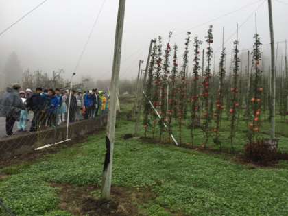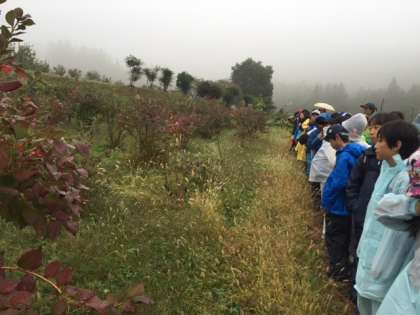 村めぐりでは、リンゴの木やブルーベリーの木、こんにゃく畑などを見ながらすすみました。