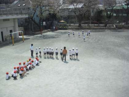 1年生は、“体育”の学習で、かけっこをしました。ならびかたも練習しました。