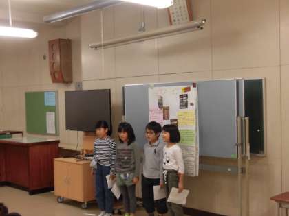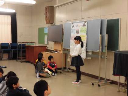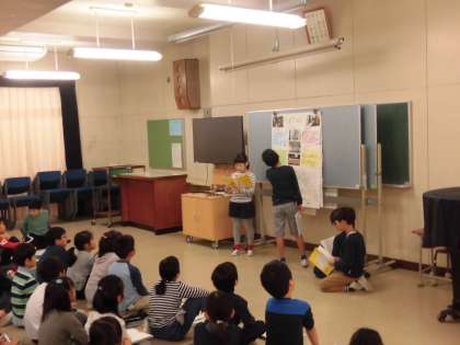発表会には保護者の方がたくさんいらしてくださり、子どもたちはとても緊張していました。しかし調べて伝えたいことがたくさんあったようで、堂々と発表していました。練習を何度もした成果を発揮できてうれしそうな様子でした。